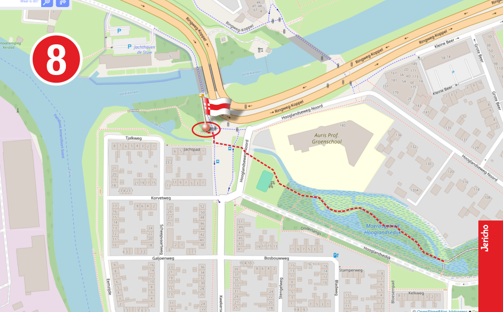 Met het oversteken van de Kwekersweg verlaten we de wijk Jeruzalem. Met de herinrichting van het moerasgebied Hooglandsedijk in 2003 is dit stuk groen tussen de wijk Jericho en het Valleikanaal aan het stadspark toegevoegd.