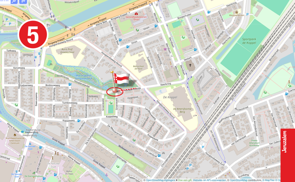 De Grebbelinie is een waterlinie tussen de Utrechtse Heuvelrug en de Veluwe, die werd aangelegd in de 18e eeuw, later bekend als Valleistelling. De waterlinie loopt van de Grebbeberg bij Rhenen tot aan Bunschoten-Spakenburg, aan wat toen nog het Zuiderzee heette. Zij doorkruist twee provincies en twaalf gemeenten. Bij de aanleg van het Valleikanaal werd de Grebbeliniedijk nog gespaard. Maar bij de bouw van de wijk Koppel en de aanleg van Ringweg Koppel werd het dijklichaam van de Grebbeliniedijk binnen de Amersfoortse gemeentegrenzen compleet afgegraven, uitgezonderd het stuk Hooglandsedijk dat gespaard bleef. Nu ligt er dus in de wijk Jeruzalem een restant van de Grebbeliniedijk, de Hooglandsedijk.