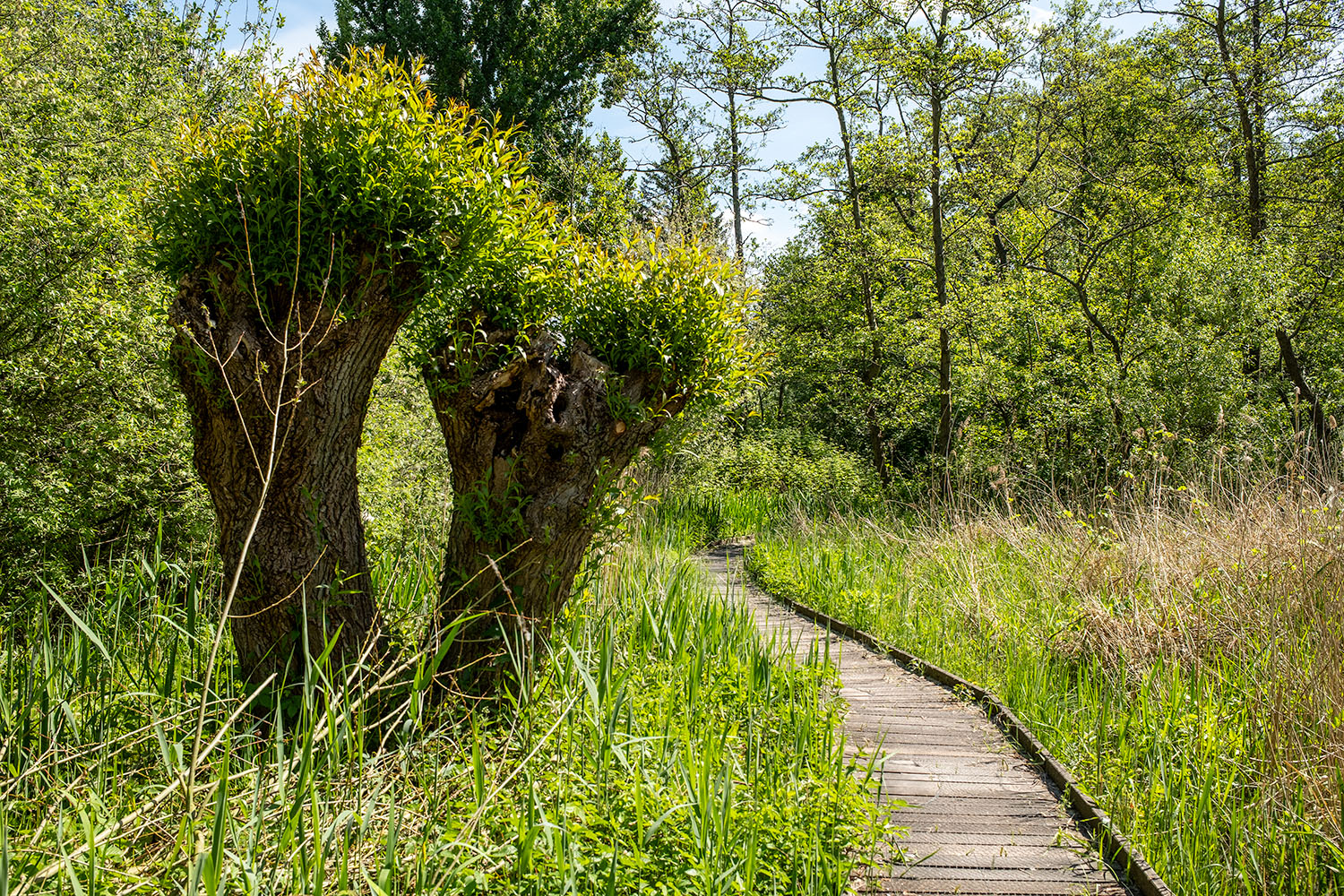 Moerasbos, rietland en een vogelbos