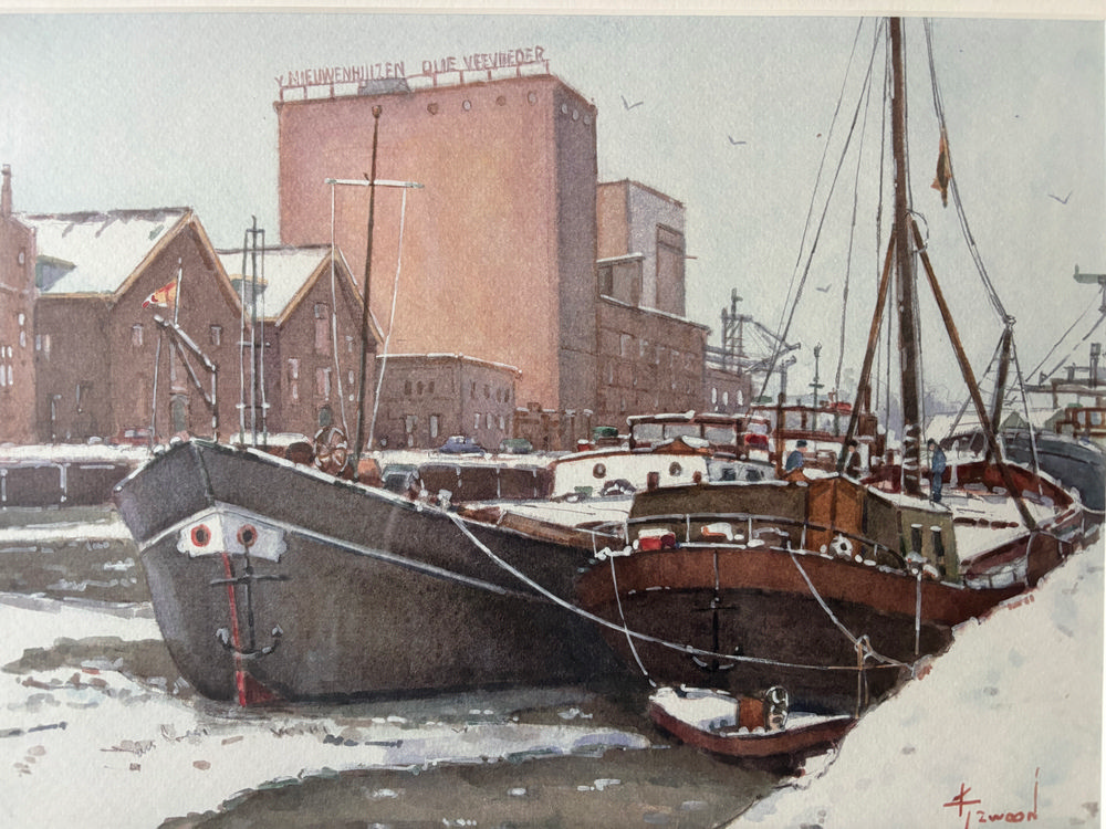 “Opa was ook binnenschipper. Die liep later elke dag naar de haven. Tegenover waar nu Dara zit, lag een heel origineel tjalkje, daar woonden twee broers van mijn opa. Ik heb nog altijd spijt dat ik dat schip niet gekocht heb. Het was helemaal origineel. Ik heb daar nog een mooi schilderijtje van. Het stond er van binnen blauw van de sigarenrook, en natuurlijk dronken ze daar een borreltje bij. Ik ben nostalgisch over de haven, omdat er niks van is overgebleven, van de binnenvaart. Alles verdween langzamerhand op de Grote- en Kleine Koppel. Waarom doet men zo weinig met die haven, daar is Amersfoort toch groot mee geworden? Maar nergens iets van de schepen, van de verhalen, helemaal niks. Die ouwe mannen zijn nu allemaal dood.”